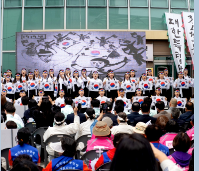 제천을 기억합니다. 그리고 앞으로 이어지는 지속가능한 역사에 동참을 호소하는 내용들이었다. 다음은 만세 삼창순으로 류관순 만세단이 단상에 올라 동포! 동포여! 대한독립만세를 선창 하면 우리 모두는 대한독립만세로 3번을 외쳤다. 뒤이어 원불교, 기독교. 천주교, 불교 대표자가 모여 단합된 힘으로 대한독립만세를 외쳤고, 이어서 제천시의회 의원들의 만세삼창으로 우리가 기억해야 할 제천독립운동의 함성을 기렸다. 그리고는 이 행사의 대미장식을 위해 50명의 어린이 합창 단원의 의병노래와 내 나라 우리 땅을 감상한 후 독도는 우리 땅! 플래시몹이 시민들과 함께 이루어졌으며, 참여시민들과 기념촬영으로 행사는 마무리 되었다.